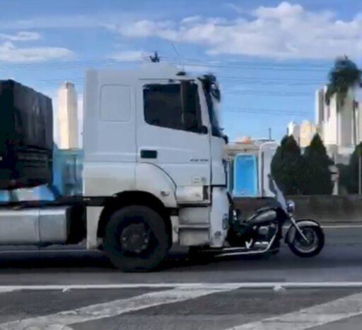 Já o seu companheiro seguiu na moto, que ficou engatada na parte frontal do caminhão. O motociclista conseguiu subir na lateral da cabine da carreta e, insistentemente, pedia para o motorista parar o veículo, o que não foi atendido.