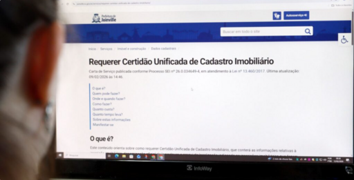 A Prefeitura de Joinville, por meio da Secretaria da Fazenda, unificou serviços do cadastro imobiliário e passou a oferecer a Certidão Unificada de Cadastro Imobiliário, documento gratuito e emitido de forma totalmente online. A iniciativa integra as ações de desburocratização do município e busca simplificar o acesso a informações imobiliárias.