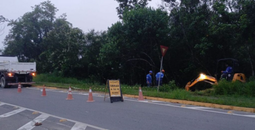 Nesta manhã, os trabalhos seguem com a abertura de vala para avaliação da estrutura da tubulação e definição das próximas etapas do reparo. A via está parcialmente interditada para a execução do serviço.