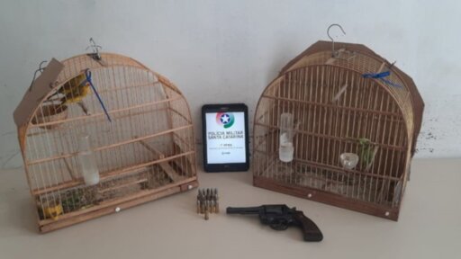 A Polícia Militar Ambiental (PMA) resgatou aves nativas, sem registro ou autorização para criação, e prendeu um homem pelo crime de posse ilegal de arma de fogo. As ações aconteceram em duas ocorrências distintas na terça-feira, 17, após os militares receberem denúncias sobre os crimes.