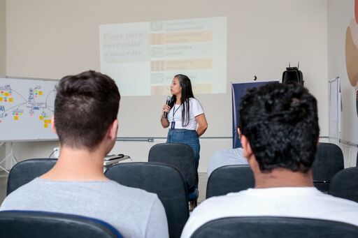 Os alunos também acompanharam uma palestra com a coordenadora do Serviço de Incentivo às Organizações Produtivas, Penha Camargo.