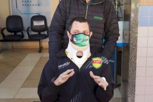 Rodrigo Crivellaro se recupera em casa e deverá ficar afastado das suas funções como árbitro por pelo menos três meses. Ele usa um colar cervical, que deverá ser de uso permanente durante este período em razão de uma lesão ligamentar na coluna.