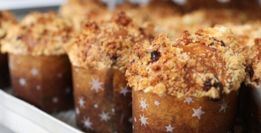 Para o recheio, são usadas gotas de chocolate ou frutas cristalizadas hidratadas, enquanto as raspas de laranja dão o aroma. Depois de ir para a forma de panetone, vem o toque mais que especial: a farofa típica do chineque. Por fim, vai para o forno e, quando sai de lá, é impossível resistir.