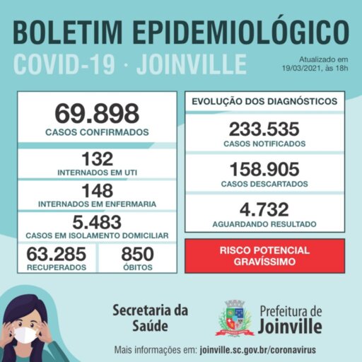 A semana se encerra com a confirmação de mais 696 casos positivos e total de 69.898 desde o início da pandemia. Os recuperados agora somam 63.285 e 850 perderam a vida. Já foram realizados 233.535 exames, com 158.905 descartados e 4.732 aguardando resultado.