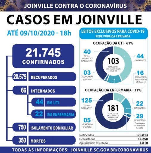 A semana se encerra com a confirmação de mais 77 casos positivos e total de 21.745 desde o início da pandemia. Os recuperados agora somam 20.579 e 350 perderam a vida. Já foram realizados 90.813 exames, com 65.258 descartados e 3.810 aguardando resultado.Mais dois óbitos foram confirmados: duas mulheres, de 69 e 71 anos.