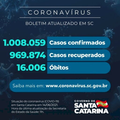 Coronavírus em SC: Estado confirma 1.008.059 casos, 969.874 recuperados e 16.006 mortes