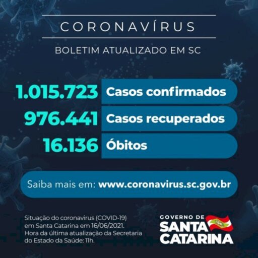 Santa Catarina já registrou 1.015.723 casos confirmados de Covid-19, dos quais 976.441 estão recuperados e 23.146 permanecem em acompanhamento. O dado foi divulgado nesta quarta-feira, 16. O novo coronavírus causou 16.136 óbitos no estado desde o início da pandemia. Com isso, a taxa de letalidade é de 1,59%.