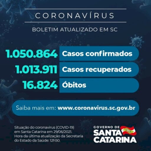 O Governo do Estado relatou que há 1.050.864 pacientes com teste positivo para Covid-19 em Santa Catarina, sendo que 1.013.911 estão recuperados e 20.129 continuam em acompanhamento. O número foi divulgado nesta terça-feira, 29. Desde o início da pandemia, 16.824 óbitos foram causados pelo novo coronavírus. A taxa de letalidade atual é de 1,6%.