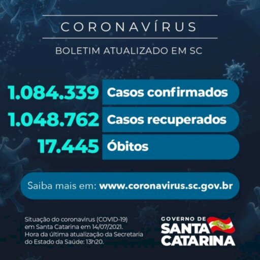 Santa Catarina chegou a 1.084.339 pacientes com teste positivo para Covid-19, sendo que 1.048.762 se recuperaram e 18.132 estão em acompanhamento. O dado foi divulgado nesta quarta-feira, 14. A doença respiratória causou 17.445 óbitos no estado desde o início da pandemia. Com isso, a taxa de letalidade é de 1,61%.