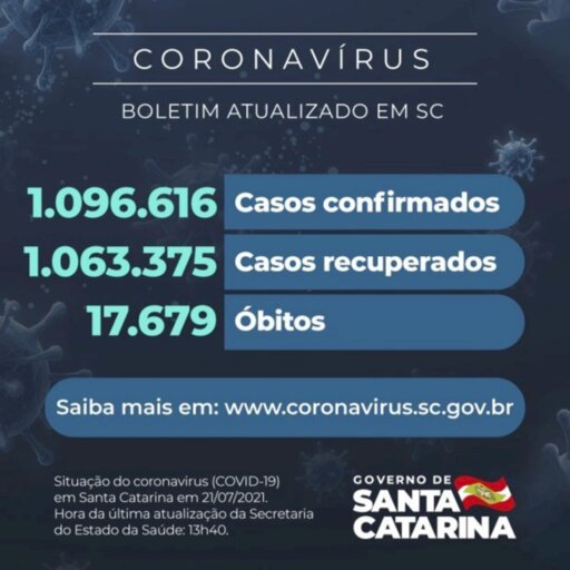 Há 1.096.616 pacientes com teste positivo para Covid-19, dos quais 1.063.375 estão recuperados e 15.562 permanecem em acompanhamento. O dado foi divulgado nesta quarta-feira, 21. Até hoje, 17.679 óbitos foram causados pelo novo coronavírus. A taxa de letalidade atual é de 1,61%.