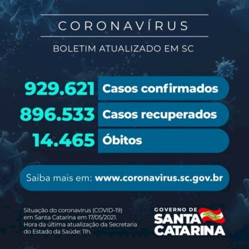 Coronavírus em SC: Estado confirma 929.621 casos, 896.533 recuperados e 14.465 mortes