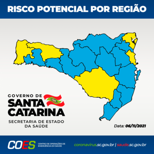 Houve melhora nos indicadores das regiões do Alto Uruguai Catarinense, Médio Vale do Itajaí, Oeste e Planalto Norte, que na semana anterior estavam classificadas como nível alto (amarelo), e passaram a ser classificadas como  risco moderado. Ela se juntam, agora, as regiões do Alto Vale do Itajaí, Alto Vale do Rio do Peixe, Carbonífera, Extremo Sul, Grande Florianópolis, Laguna, Meio Oeste e Vale do Itapocu no nível azul.