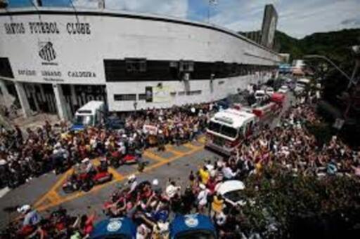 Com a chegada do corpo do Rei, a torcida organizada do Santos, carregando bandeiras enormes com o rosto dele, entoou o hino do time e músicas em homenagem ao ídolo, emocionando até mesmo os torcedores rivais. Um dos bombeiros que estava no veículo da corporação que conduzia o corpo de Pelé também não conseguiu segurar as lágrimas e recebeu o apoio da população.