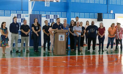 A Escola Municipal Plácido Xavier Vieira celebrou a inauguração de sua nova quadra poliesportiva coberta nesta quarta-feira (22). O espaço, com 796,62 metros quadrados, arquibancada, salas de apoio e uma quadra externa de basquete 3x3, foi erguido mediante um investimento de R$ 2.652.862,43 pela Prefeitura de Joinville, através da Secretaria de Educação.