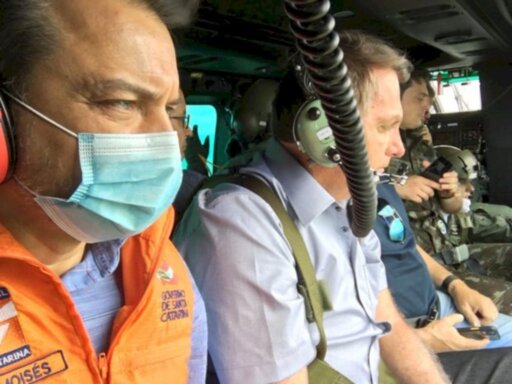 O governador Carlos Moisés recebeu o presidente Jair Bolsonaro na manhã deste sábado, 19, no aeroporto de Navegantes. Bolsonaro veio ao estado conferir a situação dos municípios atingidos pela enxurrada no Alto Vale do Itajaí. O presidente chegou a Santa Catarina no fim da manhã e, após receber as atualizações sobre a situação, sobrevoou a região junto com Carlos Moisés, o ministro do Desenvolvimento Regional, Rogério Marinho, o chefe da Defesa Civil do Estado, Aldo Baptista Neto, o senador Jorginho Mello e outras autoridades.