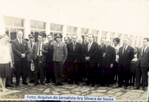Arquivo do autor - Da direita p/ a esquerda; Adhemar Garcia Filho (deputado estadual - PSD), Adhemar Garcia (empresário e líder político ? PSD), Monsenhor Sebastião Scarzello (patrono da escola), José Gonçalves ( Jota Gonçalves ? deputado estadual ? PSD e primeiro radialista de Joinville), Secretário da Estado da Educação), representante do comando do 13º Batalhão de Caçadores), Ary Silveira de Souza (repórter da Rádio Difusora), Geraldo Wetzel (empresário, líder politico ? PSD, ex-prefeito de Joinville e ex-secretário de Estado da Fazenda).