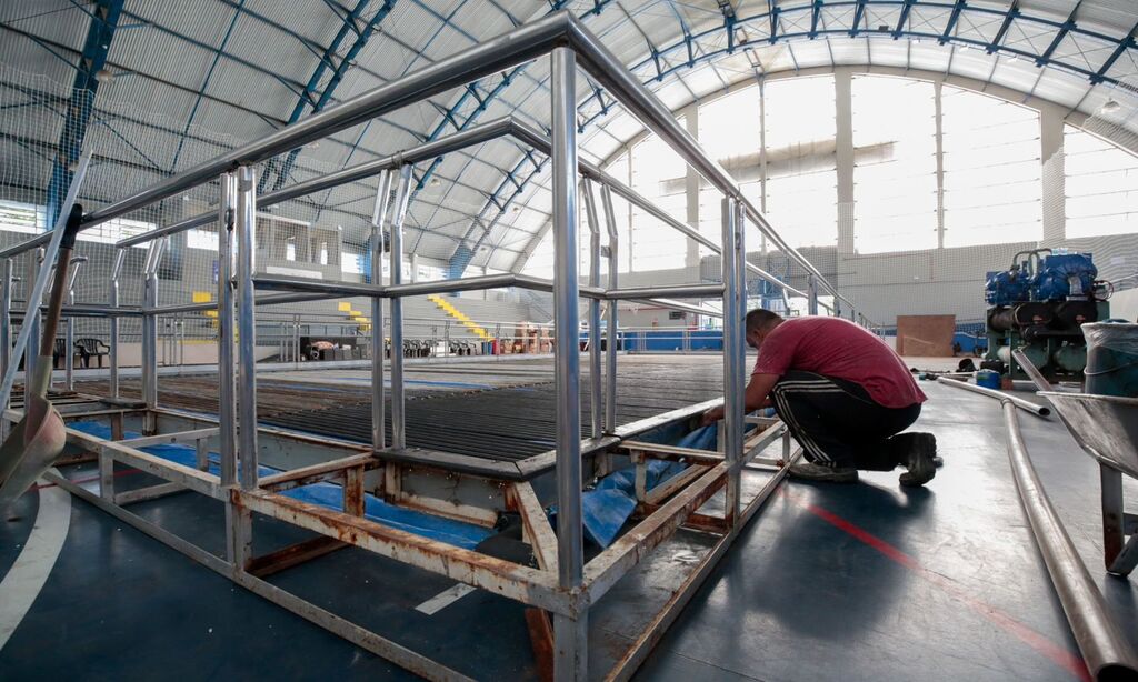 Inicia montagem da pista de patinação no gelo do Natal de Joinville
