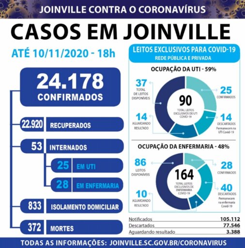 Joinville confirma mais 42 casos e um óbito por coronavírus nesta terça-feira