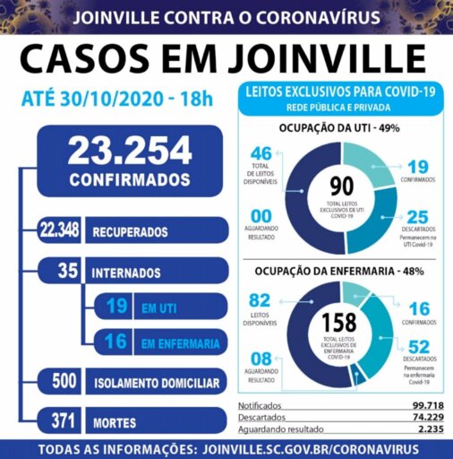 A semana se encerra com a confirmação de mais 112 casos positivos e total de 23.254 desde o início da pandemia. Os recuperados agora somam 22.348 e 371 perderam a vida. Já foram realizados 99.718 exames, com 74.229 descartados e 2.235 aguardando resultado.Mais duas pessoas perderam a vida: um homem, de 78 anos e uma mulher, de 64 anos.