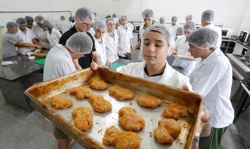 Oficina de produção de nuggets de tilápia encanta alunos da Escola Agrícola de Joinville