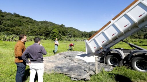 Após dez anos desativado, a Prefeitura de Joinville retomou o transporte de calcário para produtores rurais do município. A primeira ação do programa Campo Novo, ocorreu nesta sexta-feira (19/8), no bairro Vila Nova. O material é fornecido gratuitamente pelo Governo do Estado e a Prefeitura realiza o transporte do insumo da cidade de Botuverá até a propriedade agrícola em Joinville, sem custo para o agricultor.