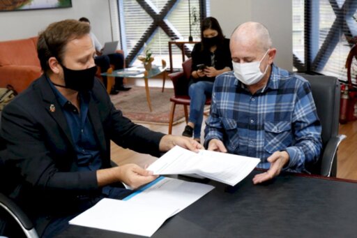 Nesta sexta-feira (28), o prefeito Adriano Silva fez a entrega da Licença Ambiental de Instalação (LAI) para Nilton Hang, diretor de Expansão da Havan, uma das maiores redes de lojas de departamentos do Brasil.