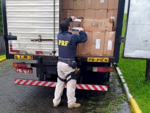PRF apreende 150 mil maços de cigarros na BR 280 em Jaraguá do Sul