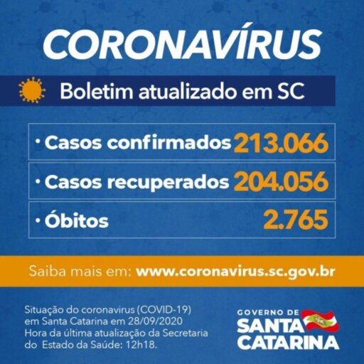 O Governo do Estado informou que há 213.066 pacientes com teste positivo para Covid-19 em Santa Catarina, sendo que 204.056 estão recuperados e 6.245 continuam em acompanhamento. O balanço foi divulgado nesta segunda-feira, 28. O coronavírus causou 2.765 óbitos no estado até agora. Com isso, a taxa de letalidade é de 1,3%. Casos de infecção pelo novo coronavírus já foram confirmados em todos os 295 municípios de Santa Catarina e 224 têm registro de ao menos um óbito. O local com a maior quantidade de casos é Joinville, que contabiliza 21.717 casos. Na sequência, aparecem Florianópolis (13.070), Blumenau (11.727), Itajaí (7.748), Balneário Camboriú (7.186), São José (7.089), Criciúma (7.022), Chapecó (6.625), Palhoça (5.911) e Brusque (5.628). A taxa de ocupação dos leitos de UTI pelo Sistema Único de Saúde (SUS) em Santa Catarina é de 60%. Isso significa que, dos 1.556 leitos existentes no estado, 622 estão livres e 934 estão ocupados, sendo 234 por pacientes com confirmação ou suspeita de Covid-19.