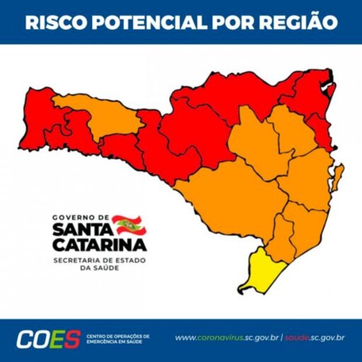 A Secretaria de Estado da Saúde (SES) divulgou nesta quarta-feira, 27, os dados da Matriz de Risco Potencial em relação ao novo coronavírus. Pela nova classificação, oito regiões do estado se encontram em nível gravíssimo (cor vermelha), sete regiões em nível grave (cor laranja) e uma região com nível alto (cor Amarela) de risco potencial para a Covid-19. A última vez que o estado tinha registrado uma região em nível alto, cor amarela, foi no dia 11 de novembro, quando o Extremo Oeste foi classificado nessa situação.