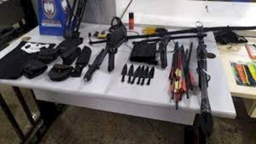 Junto dele, foram apreendidos um coquetel molotov, duas bestas (dispositivo de disparo de flechas) com flechas e facas, além das roupas utilizadas na ação.