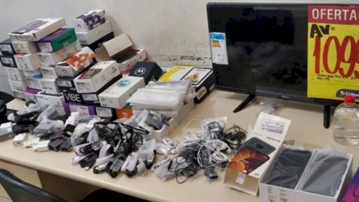 Após colidirem em um caminhão, foi realizada a abordagem e encontrada a arma de fogo que utilizada no roubo, sendo um revólver calibre 32, com numeração suprimida. Além disto, também foram recuperadas diversas caixas com aparelhos celulares e uma televisão.