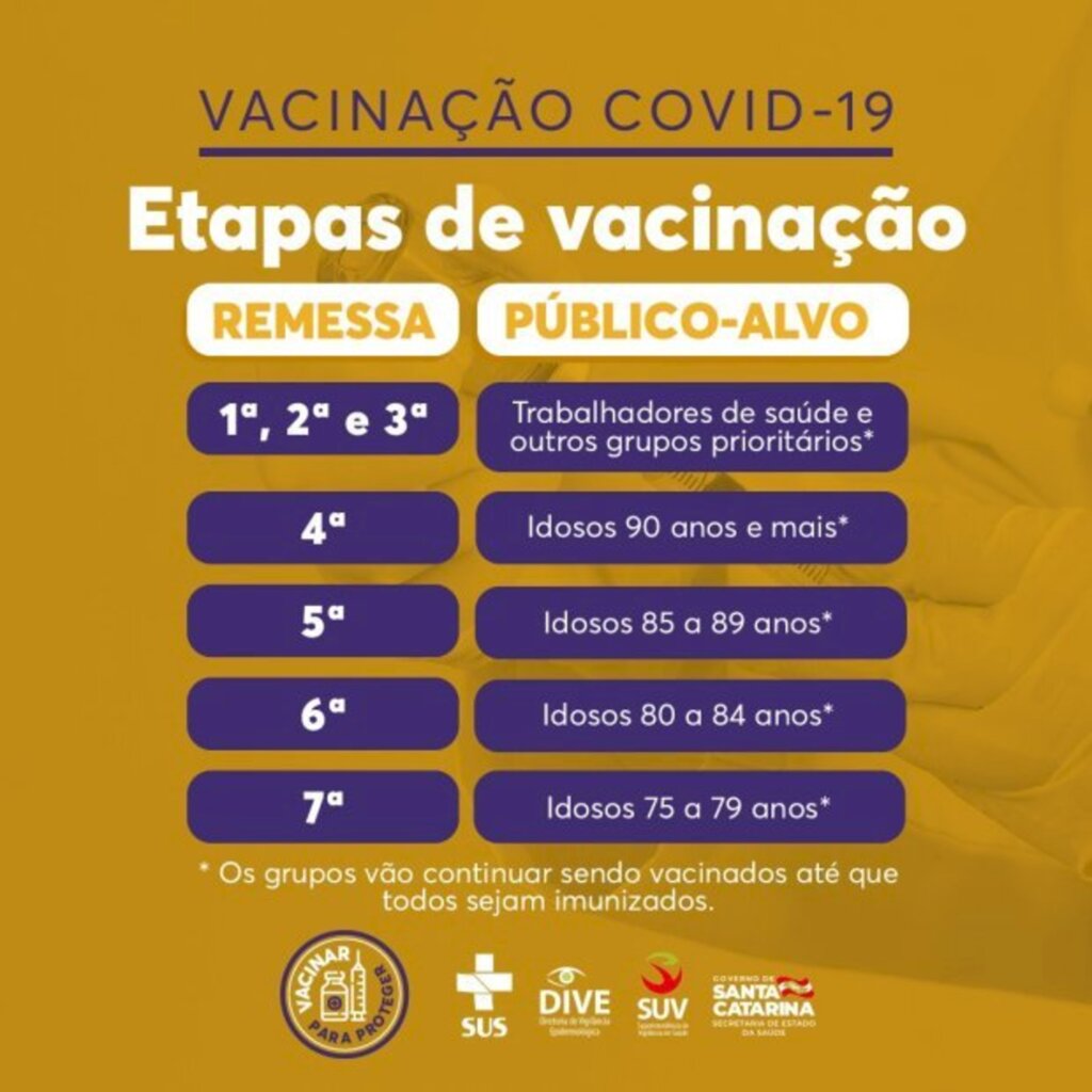 O secretário da saúde, André Motta Ribeiro, explica que assim que um novo lote de vacinas chegar ao estado, será imediatamente distribuído para as 17 unidades descentralizadas de Vigilância Epidemiológica de Santa Catarina que vão encaminhar aos 295 municípios catarinenses para iniciar uma nova etapa de vacinação. "Até o momento, temos conseguido fazer a distribuição das vacinas que chegam ao estado em um curto período de tempo, o que demonstra a união de Santa Catarina na imunização da nossa população", ressalta.