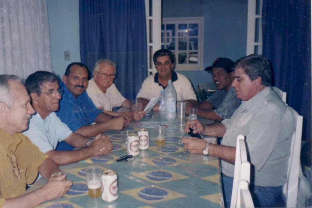 Foto: Jornal do Iririú/arquivo/Reunião de fundação da AÇORIANA, na sede da Recreativa dos Radialistas, em 11 de novembro de 2002. Da direita, Ary Silveira de Souza (jornalista e radialista), Osvaldo Davi Agra Filho (radialista), Vilmar Pedro de Souza (secretário de Turismo - in memoriam), e Ramiro Gregório da Silva (radialista - in memoriam) - na cabeceira Valmor de Souza, empresário do ramo de gastronomia), primeiro à direita, não identificado - segundo à direita, Érico Cruz de Oliveira (radialista - in memoriam)