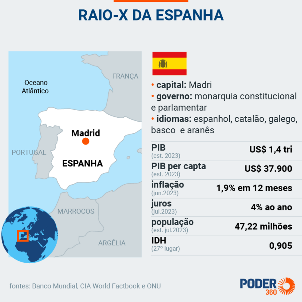 Com 47,2 milhões de habitantes, a Espanha tem um PIB (Produto Interno Bruto) per capita de € 24.580 –inferior ao da UE (União Europeia), de € 28.840.
