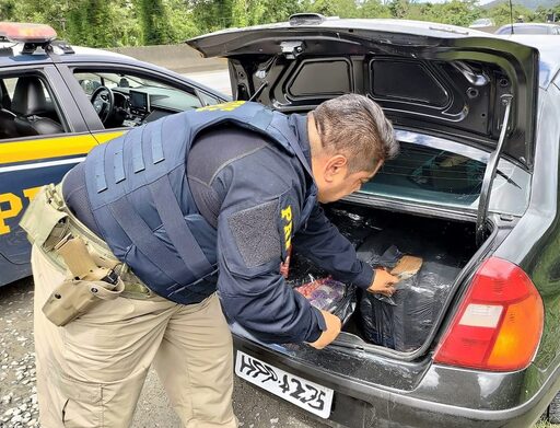 Conforme a PRF, o porta-malas e o banco traseiro estavam lotados de tabletes e pacotes de maconha e skunk, que segundo o envolvido, seriam entregues em Joinville.