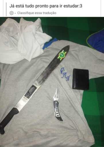 A Secretaria de Educação do município acionou a PMSC após um print das redes sociais do menor circular. Na publicação, o jovem fotografou um facão e de uma faca, com a legenda: “Já esta tudo pronto pra ir estudar”. Conforme a polícia, dando a entender que iria promover um ataque contra a escola.